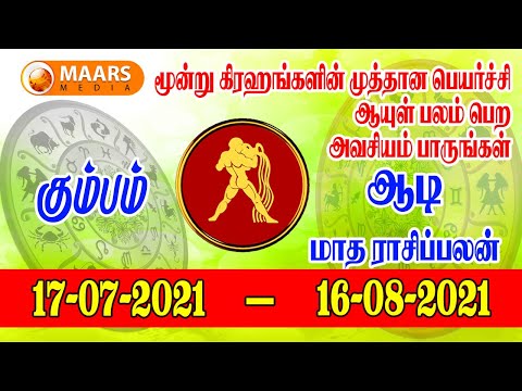 கும்பம் ராசி | Monthly Rasi Palan | ஆடி | மாத ராசி பலன் | kumbam | rasi palan