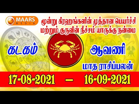 கடகம் ராசி | Monthly Rasi Palan | ஆவணி | மாத ராசி பலன் | kadagam